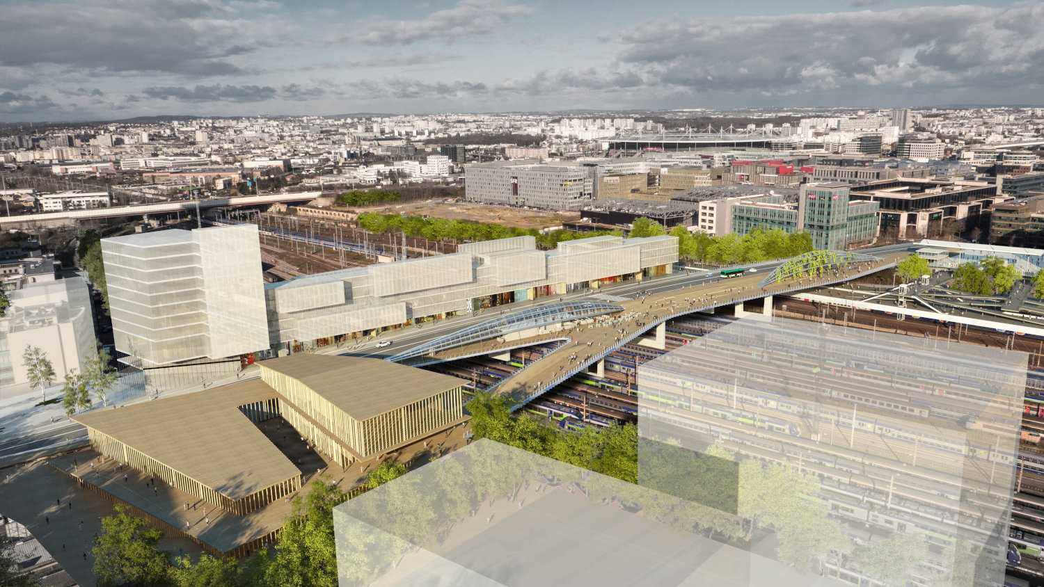 La nouvelle gare Saint-Denis Pleyel se trouve à 2 minutes à pied de Carré Pleyel. Dès 2024, elle deviendra le plus gros hub de transports en commun de la métropole.